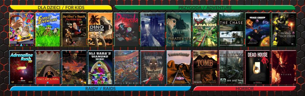 Kino 7D to zaawansowana forma rozrywki filmowej, która łączy tradycyjne kino z interaktywnymi wrażeniami. Oprócz obrazu 3D i wysokiej jakosci AUDIO, kino 7D oferuje dodatkowe zmysłowe bodźce, takie jak wibracje, zapachy i efekty atmosferyczne, aby widzowie mogli jeszcze bardziej wczuć się w akcję filmu. To emocjonujące doświadczenie, które przybliża widza do wydarzeń na ekranie.